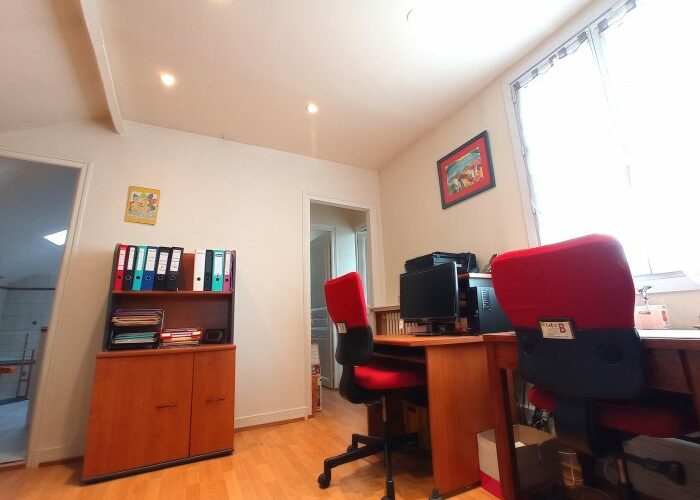A l’étage, un palier pouvant servir d’espace bureau, une salle de bain avec WC ainsi que 3 chambres au calme.
